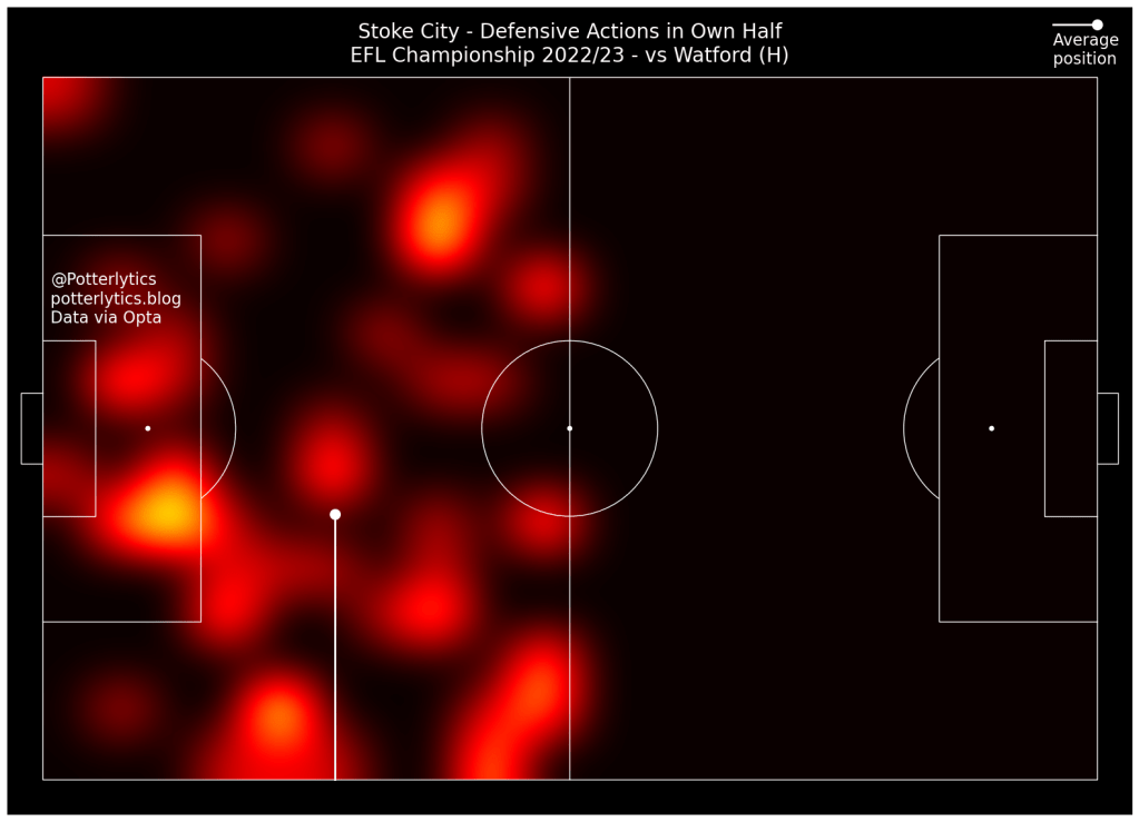 Reposting the plot above, we see that Stoke look to pretty much defend 2 areas and 2 areas only.