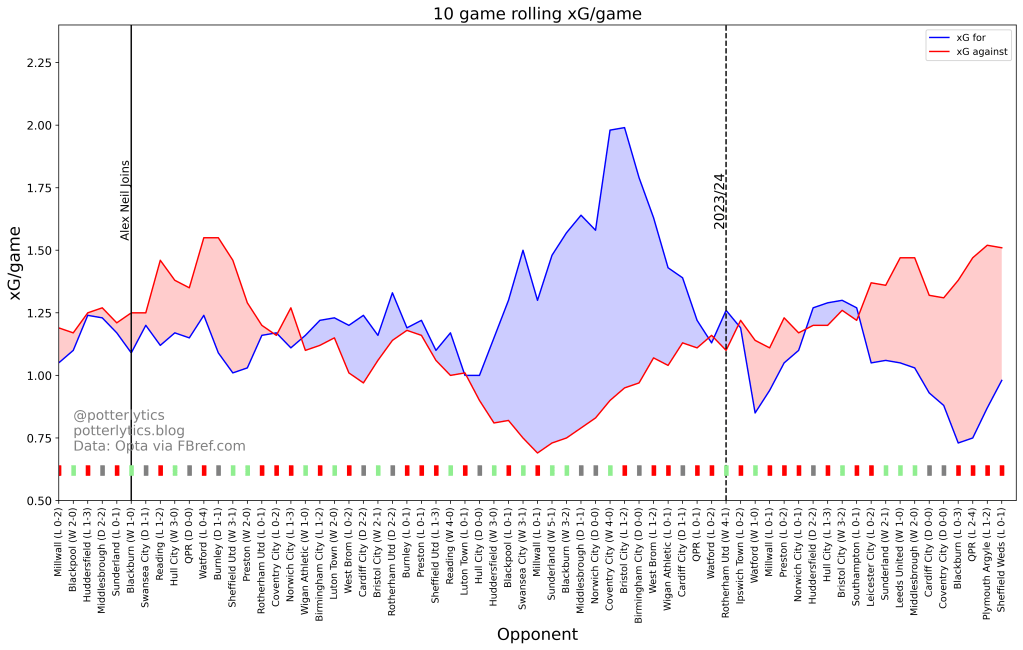 Since Narcis Pelach took over, Stoke’s underlying numbers have plummeted to one of the worst in the division, creating more than their opposition in just 2 of his 17 games in charge.