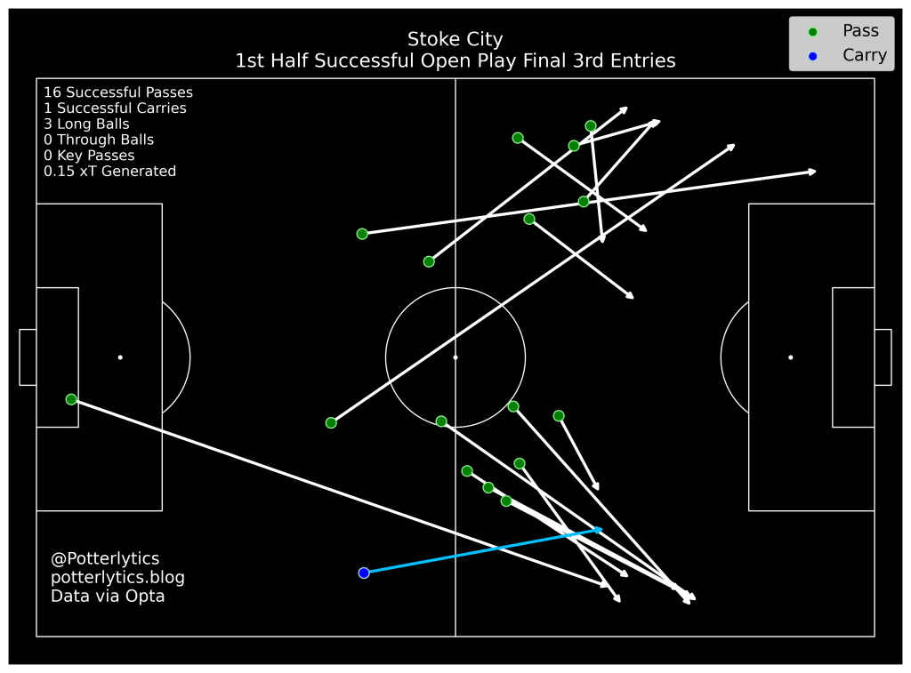 Whilst they can sit in a compact block well, and prevent easy passes centrally, Stoke struggle so much with actively being able to win the ball back in these higher areas against sides with a bit of composure.