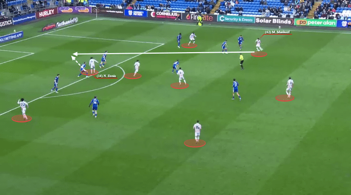 Cardiff do one thing very well in this phase of play – spreading their attacking line to fill the width of the pitch.